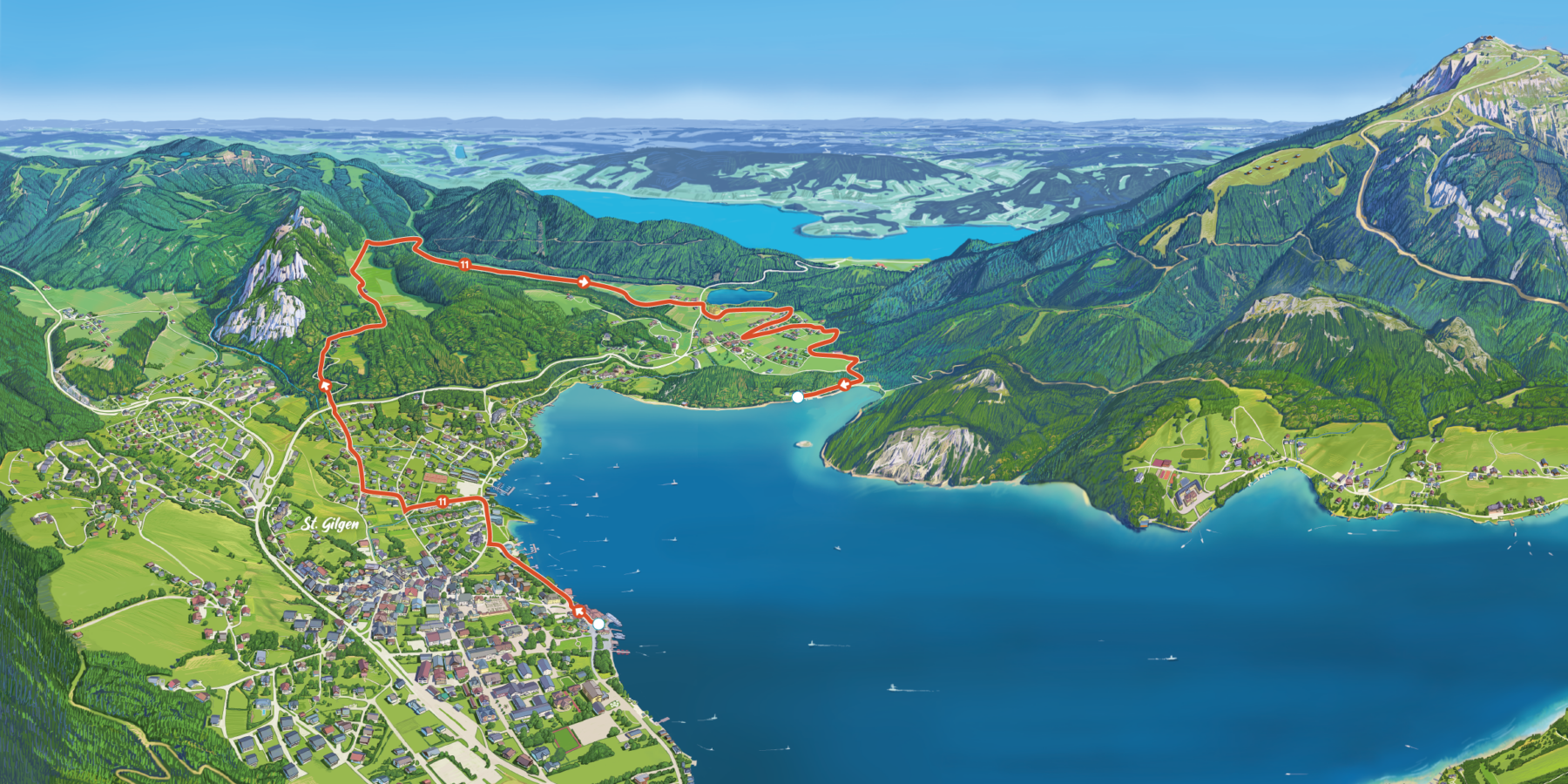 Erlebe auf dem Friedenspfad die Welt in der Stille des Gehens. Dieser besondere Pfad, vorbei am Europakloster Gut Aich, gleicht einem sanften Fluss, der dich durch seine ruhigen und harmonischen Wege trägt. Du startest bei der Schiffsanlegestelle St. Gilgen.