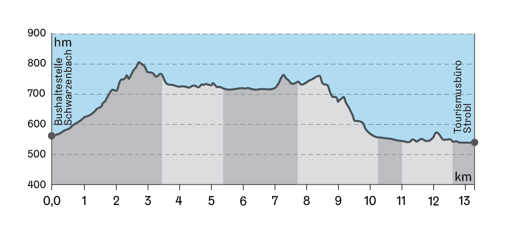 Der Pittoreskpfad führt dich auf eine reizvolle Reise hinauf zur malerischen Idylle am Schwarzensee. Dein Ausgangspunkt ist die Bushaltestelle Schwarzenbach. Entlang des Pfades findest du genügend Möglichkeiten zum Rasten und Ausruhen und wirst mit einer magischen Naturlandschaft belohnt.