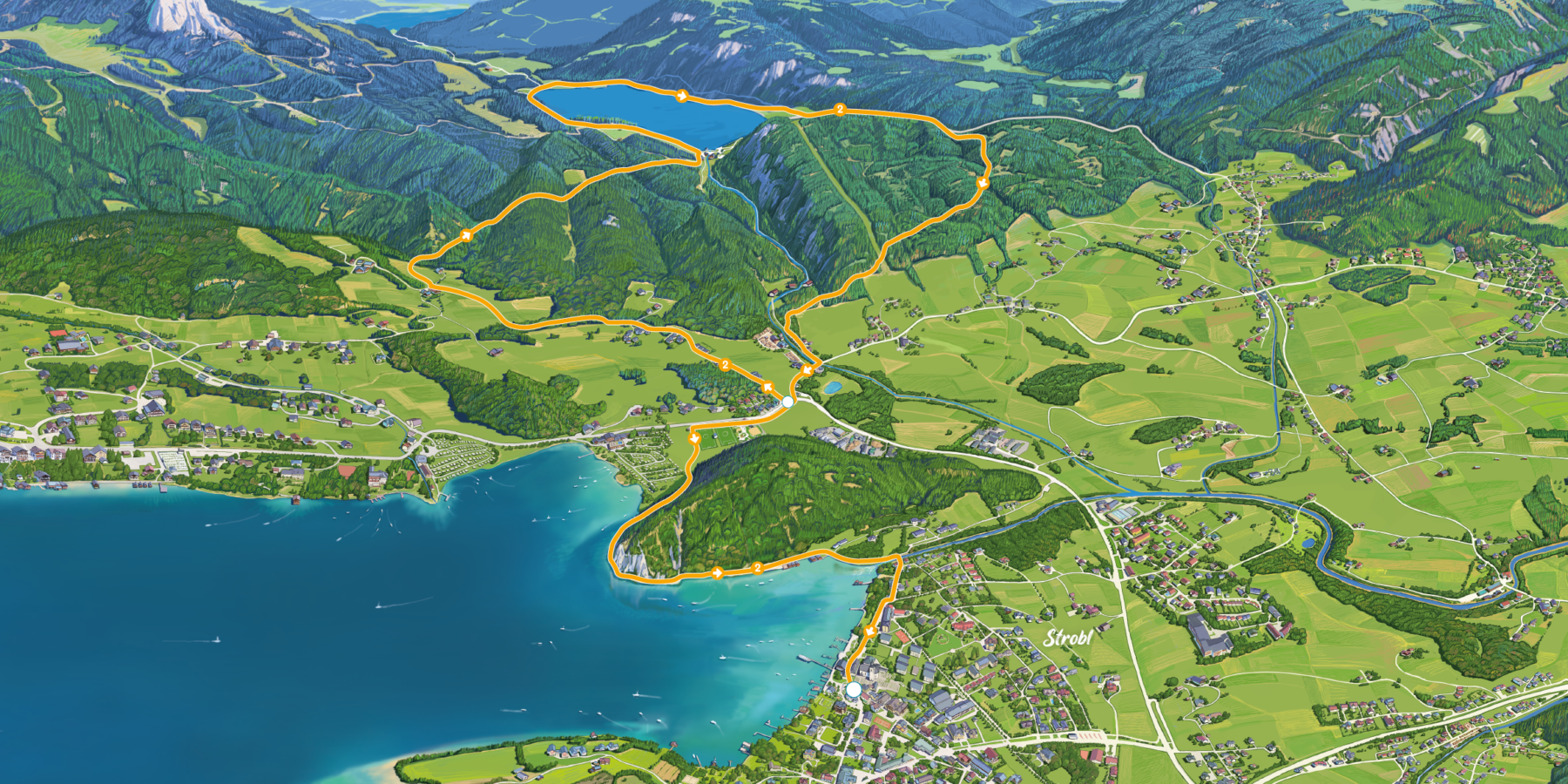 Am Ende kommst du unweit dem Anwesen Grabenmühle vorbei, wo die Bäuerin frisches Holzofenbrot direkt ab Hof verkauft. Du folgst weiter dem Bachverlauf des Schwarzenbaches bis zur St. Wolfgang Landesstraße. An der Landesstraße angekommen überquerst du diese und gehst links weiter, bis du die Brücke der Ischler Ache erreichst. Direkt nach der Brücke biegst du rechts hinab und folgst hier links dem Wanderweg entlang der Ischler Ache Richtung Strobl. Bei der Wolfgangsee-Klause gehst du links Richtung Strobl-Zentrum, wo der Pittoreskpfad schließlich sein Ende findet.