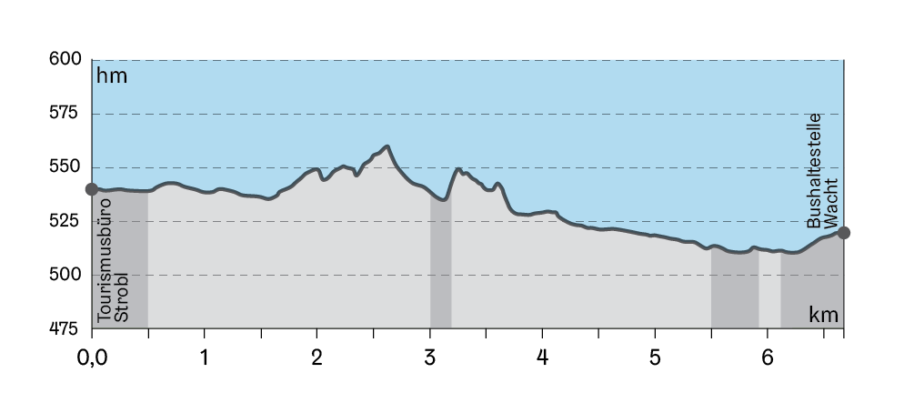 Entlang des Weges begegnen dir einige Denkmäler, wie etwa ein Konglomeratkreuz in der Nähe der Schlagermühle. In den Sockel des Kreuzes wurde als Symbol der Liebe ein herzförmiger Weihwasserbehälter eingearbeitet. Dieses Steinkreuz wurde zur Erinnerung an eine junge Seidenfabrikantentochter aus Wien errichtet, die sich aufgrund einer unglücklichen Liebe das Leben genommen hatte. Weiter kommst du an einer Pestsäule aus Schwarzensee-Marmor vorbei, welche an die an Pest verstorbene Bäuerin Maria Unterbergerin erinnert. Bei einem idyllischen Platz weiter des Weges beim Mooshäusl, findest du einen Bildstock, der die Heilige Familie darstellt. Der Name „Mooshäusl“ leitet sich von der dortigen Bodenbeschaffenheit ab, da die Gegend aufgrund der Nähe zur Ischl moosig und sumpfig war. Schließlich unterquerst du die Wolfgangsee Straße und der Seidenfadenpfad findet bei der Bushaltestelle Gasthof zur Wacht sein Ende.