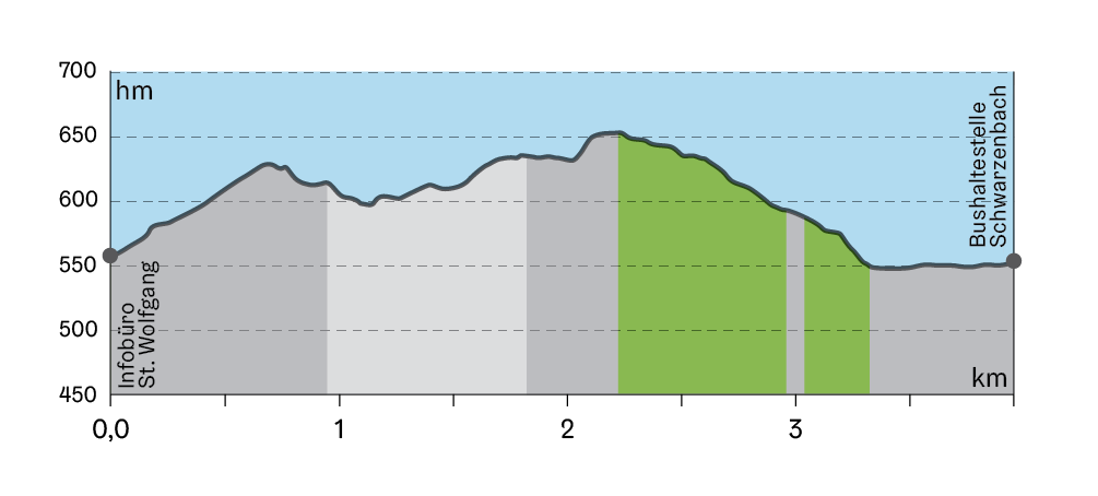 Weiter wanderst du entlang von Wiesen und Wäldern und genießt eine wunderbare Aussicht über St. Wolfgang. Neben gut erhaltenen Bildstöcken, Marterl und Kapellen führt dich der Sonnenpfad auch zu einem Wetterkreuz.