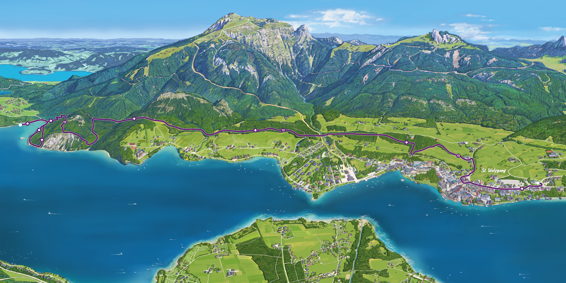 Der Wolfgangipfad bietet dir spannende Einblicke und atemberaubende Ausblicke auf den Spuren des Heiligen Wolfgangs, Namensgeber des Wolfgangsees. Dein Abenteuer führt dich über den imposanten Falkenstein und entlang des malerischen Rieder Steiges, bis du schließlich St. Wolfgang erreichst.